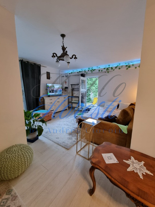 Un loc superb, cu un apartament recent renovat. Grădină 1000 metrii cu multe plante, lac cu pești, loc de recreație, terasă proprie, loc special amenajat pentru gratar, foarte intim si liniște.