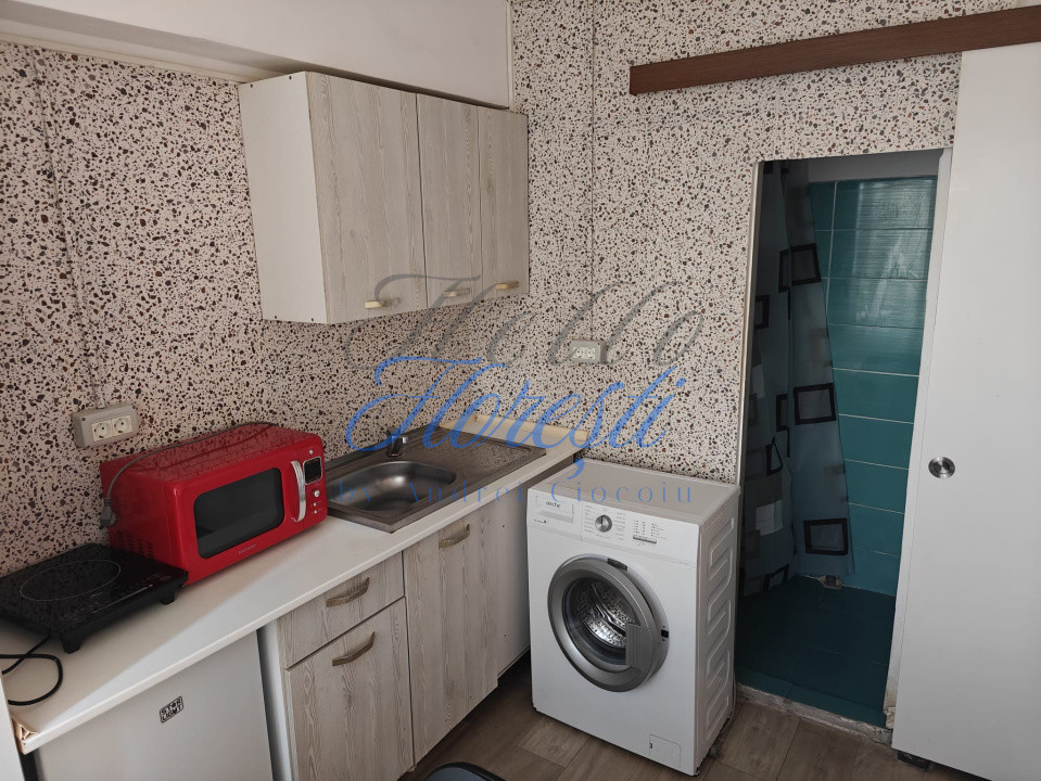 In garsoniera este o plita cu inductie, un cuptor cu microunde, masina de spalat si frigider.