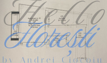 -living cu bucatarie open space cu iesire în balcon, -un hol