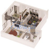 Apartamentul are 65,40 mp, este semidecomandat si compartimentat astfel: living cu bucatarie open space, 2 dormitoare, 2 bai si balcon de 7 mp.