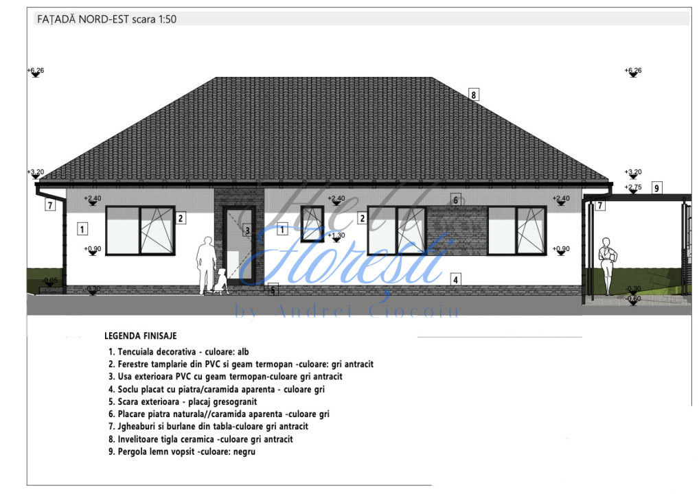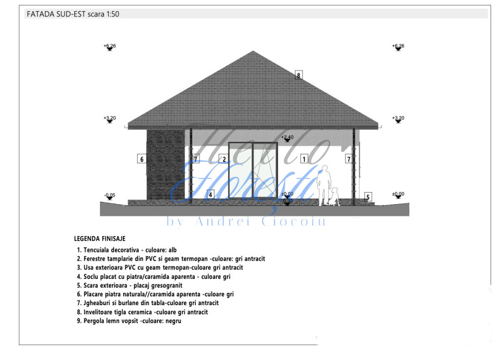 -Structura din caramida Cemacon izolata cu polistiren de 15 cm, finisaj exterior cu tencuiala decorativa si piatra naturala