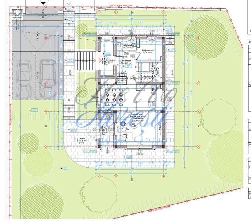 -parter :cu 2 terase, living open space cu acces spre curtea din spate, hol generos , zona de masa, baie de serviciu si camera tehnica
