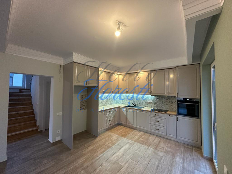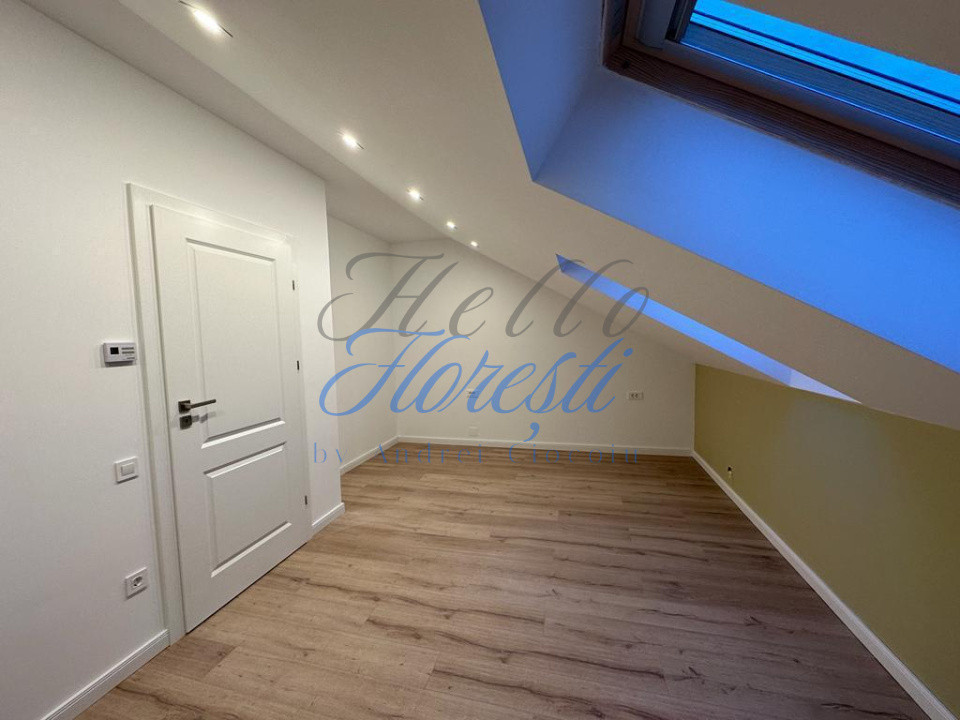 Imobilul se preda la stadiul de finisat respectiv partial mobilat si utilat avand: usi interioare montate, bucataria mobilata si utilata, toate cele 4 bai sunt mobilate si utilate, holurile de la parter si etaj sunt mobilate, zona de living este partial mobilata si dormitorul matrimonial este partial mobilat. La exterior imobilul este finalizat, curtea este pavata, terenul este imprejmuit, portile de acces in curte sunt automatizate, iar spatiile verzi au prevazute sisteme automatizate de irigare cu aspersoare pentru gazon si sistem de picurare pentru plante si copaci. Imobilul dispune de parcare in curtea interioara.