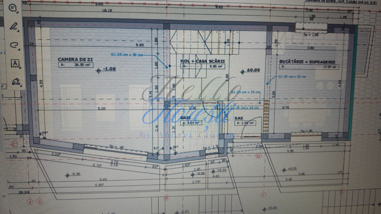 -Parter: Camera de zi , bucatarie+sufragerie , baie , sas , hol , casa scarii