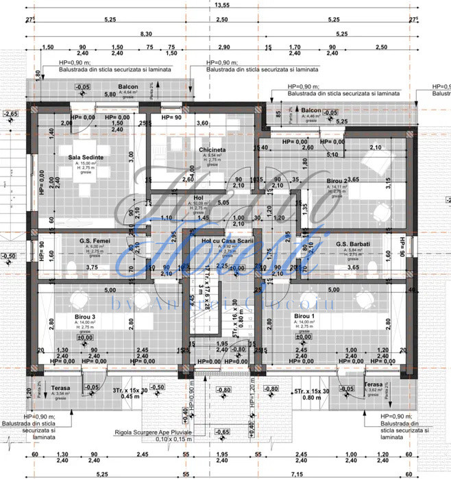 Parter : Spatiu Servicii cu acces public de 90mp utili